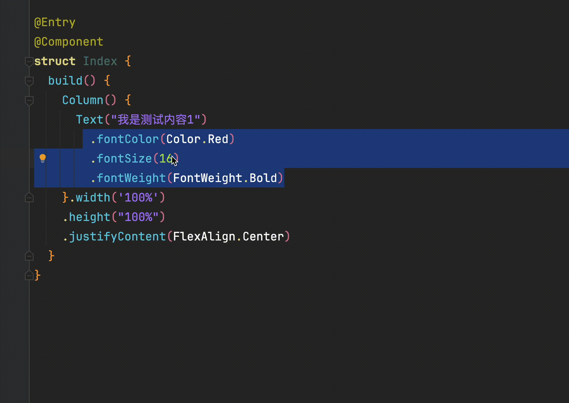 举一个很简单的例子,如下代码,如何快速的把Text组件设置的属性,快速的抽成一个函数调用呢?