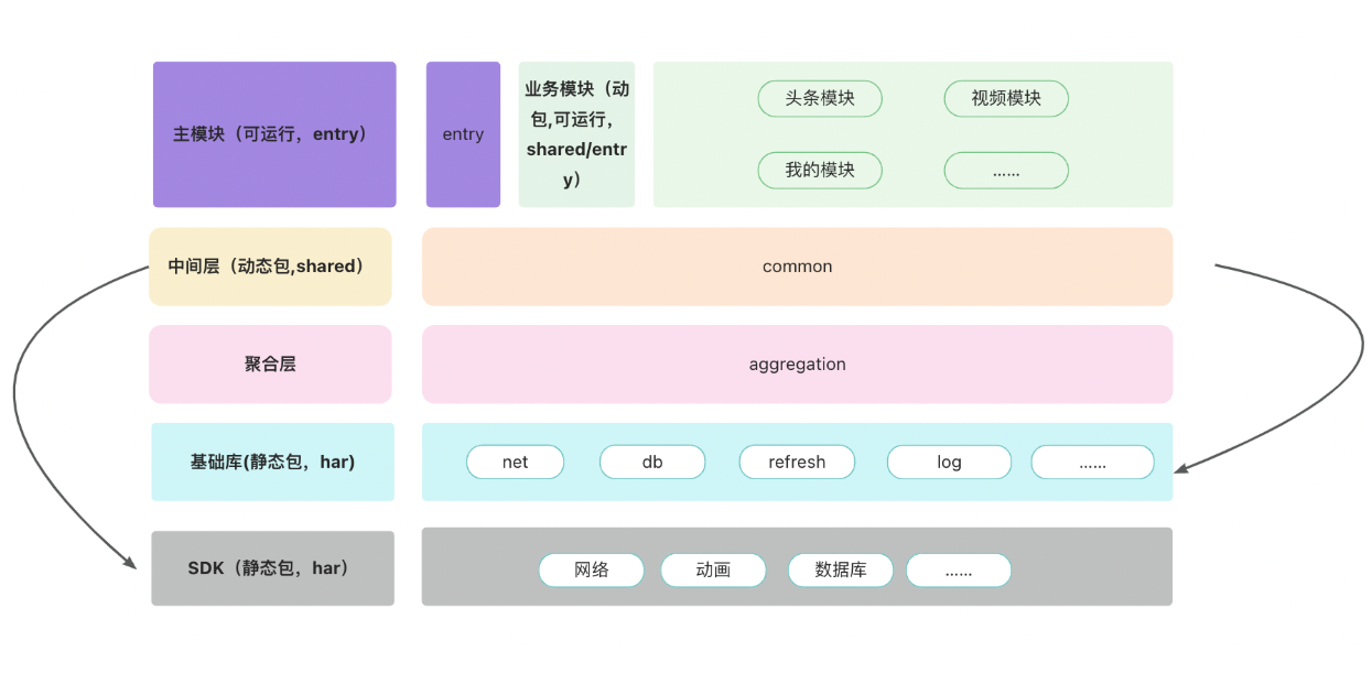 资讯项目,相对来说,还是比较的简单,我们可以把代码统一放到主模块中实现,这样做一点问题没有,但是,为了结合市场的导向,以及未来的技术发展,我们这里依然采用组件化的形式进行开发,关于鸿蒙端如何实现组件化,之前陆陆续续已经分享了多篇文章,这里不在赘述,为什么采用组件化?这里简单在陈述一下:最大的原因莫过于解耦,使其功能模块之间相互独立,既方便后续的功能复用,也能团队协作之间明细各自的任务开发,减少一定的冲突;除此之外还有一个最突出的能力,那就是减少编译时间,提高运行测试效率。