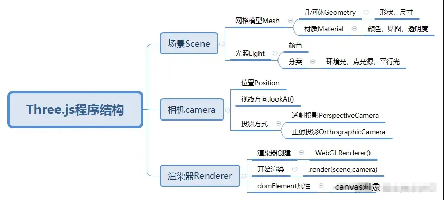 three.js其实是依靠与Canvas画布的3D绘图功能,threejs渲染的三维效果图就是呈现在Canvas画布上面。