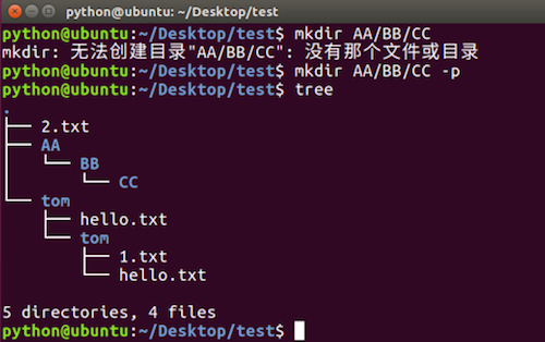 mkdir命令选项效果图: