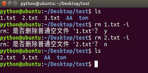 rm -i命令选项效果图: