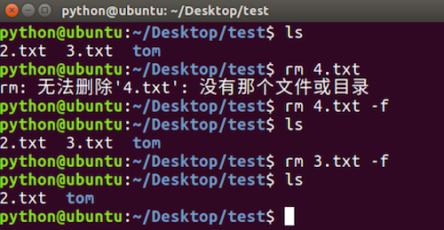 rm -f命令选项效果图: