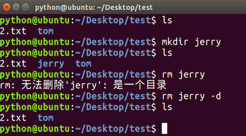 rm -d命令选项效果图: