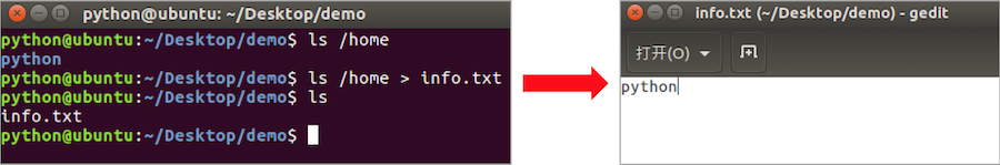 重定向也称为输出重定向,把在终端执行命令的结果保存到目标文件。