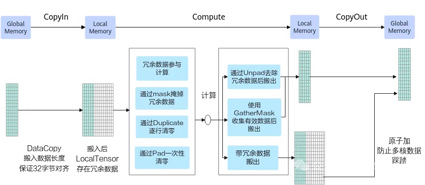 带冗余数据搬出。注意多核处理时开启原子加(使用SetAtomicAdd接口),防止数据踩踏。