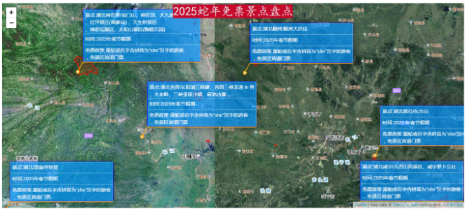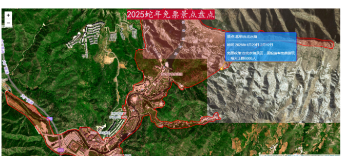 在数字化时代,旅游已经不再仅仅是“说走就走”的冲动,而是一场充满科技感的探索之旅。2025年,农历蛇年,全国各地的旅游景点纷纷推出免票政策,为游客带来了一场前所未有的福利盛宴。从北京的古北水镇到江西的庐山,从四川的光雾山到山东的崂山,免票政策的覆盖面之广、力度之大,令人惊叹。然而,面对如此多的选择,如何高效地规划行程、选择心仪的景点呢?这时,WebGIS(Web地理信息系统)或许能为我们提供一个全新的视角。