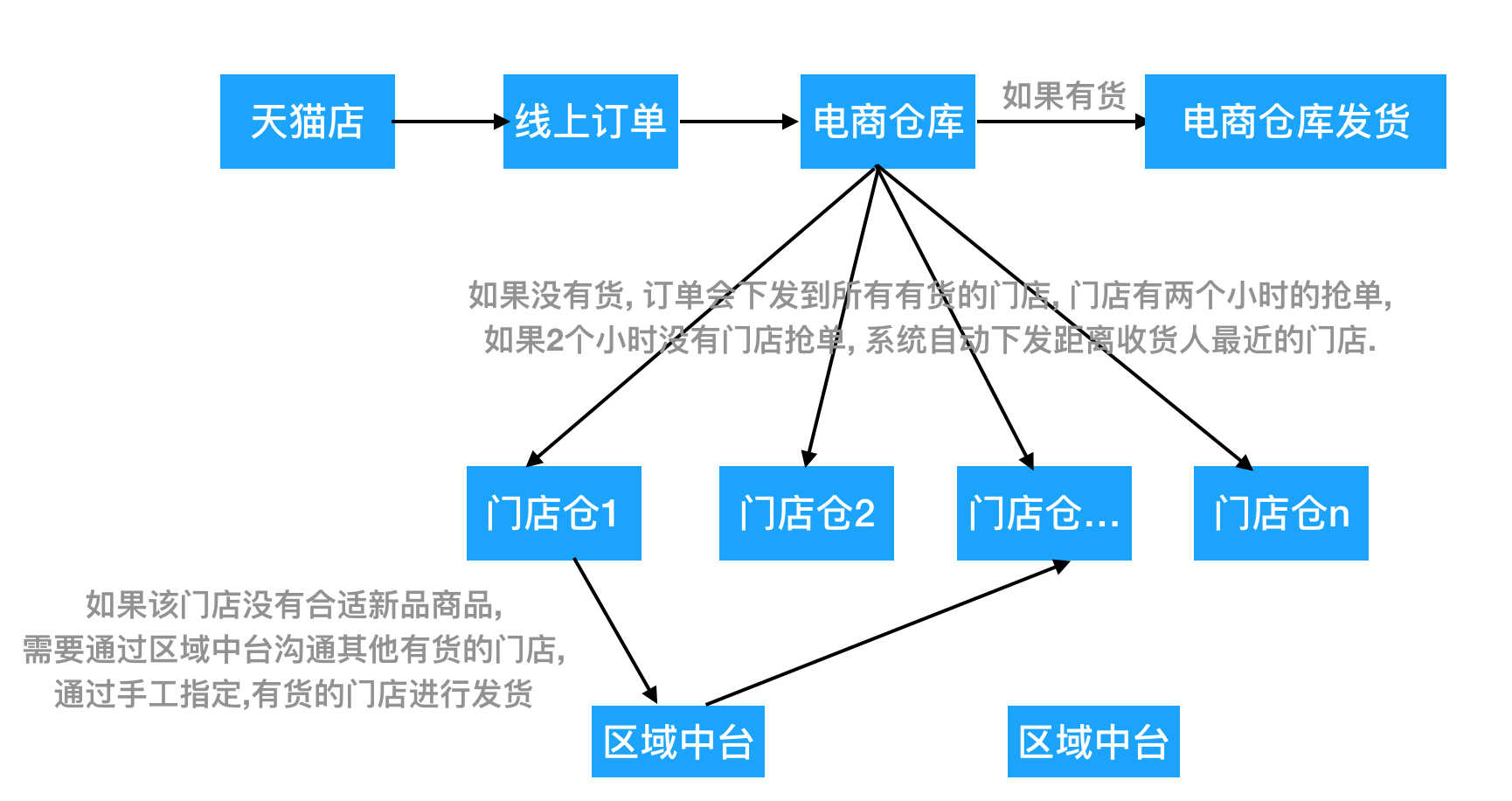 线上订单 -> 电商总仓 -> 如果有总仓发货