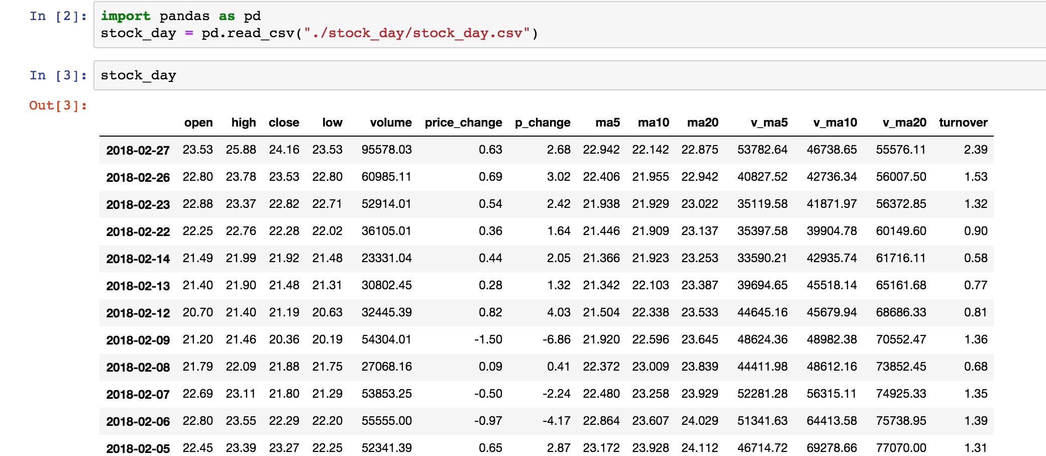 教程总体简介:机器学习(常用科学计算库的使用)基础定位、目标 定位 目标 1.1 人工智能概述 学习目标 1 人工智能应用场景 2 人工智能小案例 3 人工智能发展必备三要素: 4 人工智能、机器学习和深度学习 4 小结 机器学习概述 1.4 机器学习工作流程 1 什么是机器学习 Pandas 5.8 高级处理-数据离散化 1 为什么要离散化 2 什么是数据的离散化 3 股票的涨跌幅离散化 3.1 读取股票的数据 3.2 将股票涨跌幅数据进行分组 3.3 股票涨跌幅分组数据变成one-hot编码 5.10 高级处理-交叉表与透视表 1 交叉表与透视表什么作用 2 案例分析 2.1 数据准备 2.2 查看效果 2.3 使用pivot_table(透视表)实现 5.12 案例 1 需求 2 实现 2.1 问题一: 完整机器学习项目的流程(拓展阅读) 独立同分布IID(independent and identically distributed) 1.独立同分布(i.i.d.) 2.简单解释 — 独立、同分布、独立同分布 3.机器学习领域的重要假设 4.目前发展 拓展阅读 1.6 模型评估 2 回归模型评估 3 拟合 1.7 Azure机器学习模型搭建实验 Azure平台简介 1.8 深度学习简介 1 深度学习 —— 神经网络简介 2 深度学习各层负责内容 2.1 库的安装 小结 机器学习基础环境安装与使用 2.2 Jupyter Notebook使用 一级标题 4 Jupyter Notebook中自动补全代码等相关功能拓展【了解】 3.1 Matplotlib之HelloWorld 1 什么是Matplotlib 3 实现一个简单的Matplotlib画图 — 以折线图为例 3.2 图形绘制流程: 3.3 折线图绘制与显示 4 认识Matplotlib图像结构(了解) 3.2 基础绘图功能 — 以折线图为例 1 完善原始折线图 — 给图形添加辅助功能 1.1 准备数据并画出初始折线图 1.2 添加自定义x,y刻度 1.3 中文显示问题解决 1.4 添加网格显示 1.5 添加描述信息 1.6 图像保存 2 在一个坐标系中绘制多个图像 2.1 多次plot 2.2 设置图形风格 2.3 显示图例 2.4 练一练 3 多个坐标系显示— plt.subplots(面向对象的画图方法) 4 折线图的应用场景 3.3 常见图形绘制 1 常见图形种类及意义 2 散点图绘制 4.1 Numpy优势 2 ndarray介绍 3 ndarray与Python原生list运算效率对比 Numpy 4.2 N维数组-ndarray 4.3 基本操作 1 生成数组的方法 1.1 生成0和1的数组 1.2 从现有数组生成 2 数组的索引、切片 3 形状修改 3.1 ndarray.reshape(shape, order) 4 类型修改 4.2 ndarray.tostring([order])或者ndarray.tobytes([order]) 4.3 jupyter输出太大可能导致崩溃问题【了解】 5 数组的去重 5.1 np.unique() 4.5 数组间运算 1 数组与数的运算 4.6 数学:矩阵 1 矩阵和向量 1.1 矩阵 1.2 向量 2 加法和标量乘法 3 矩阵向量乘法 5 矩阵乘法的性质 6 逆、转置 7 矩阵运算 7.1 矩阵乘法api: 5.2 Pandas数据结构 1.Series 2.DataFrame 3.MultiIndex与Panel 3.2 Panel 5.6 文件读取与存储 1 CSV 1.1 read_csv 2 HDF5 2.1 read_hdf与to_hdf 3 JSON 3.2 read_josn 案例 3.3 to_json