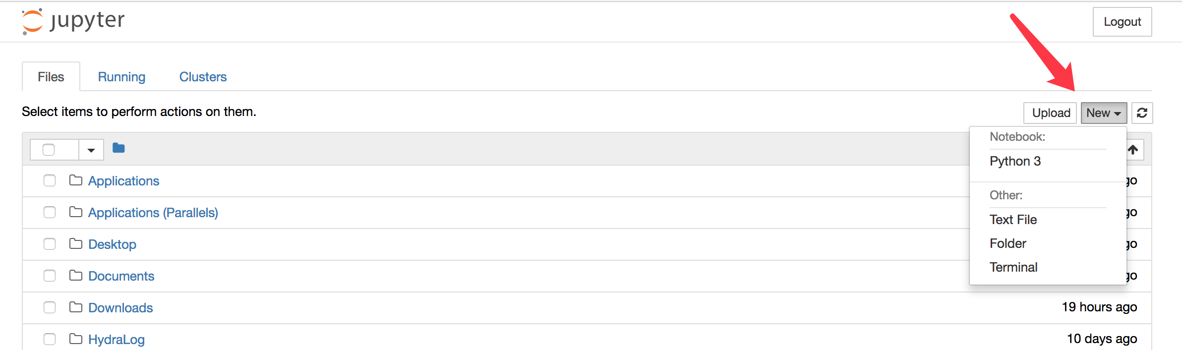 环境搭建好后,本机输入jupyter notebook命令,会自动弹出浏览器窗口打开Jupyter Notebook