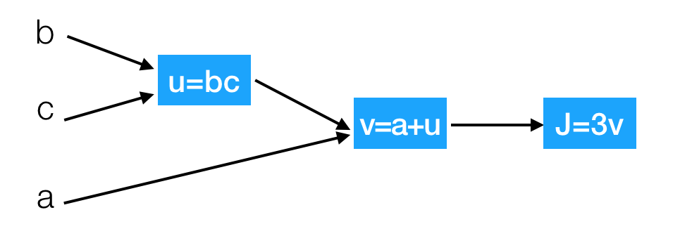 dJdc=9=dJdududc=3∗3\frac{dJ}{dc}=9=\frac{dJ}{du}\frac{du}{dc}=3*3dcdJ=9=dudJdcdu=3∗3
