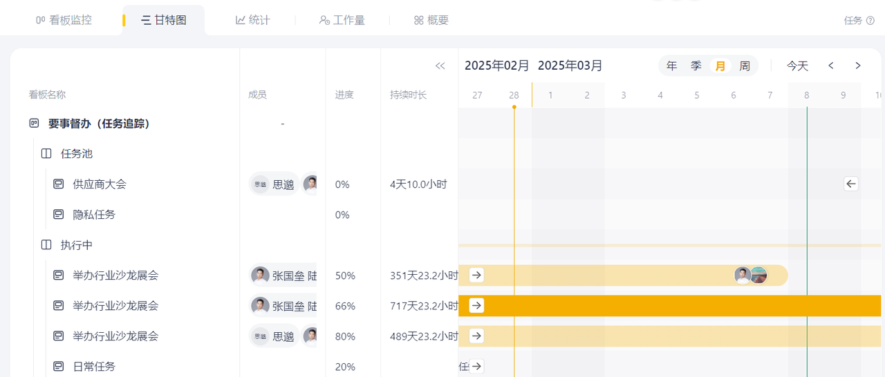 甘特图动态依赖,将任务间关系以“连锁反应”方式自动呈现,任意节点调整即刻同步,让项目经理和执行人都能一目了然进度变更带来的影响,迅速制定应对策略。