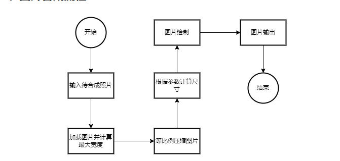 上述是图片的合成流程图,实现的过程都是比较简单,没有外部的依赖,完全使用Java的原生基础API实现。主要的计算步骤包括:1、读取输入的待合成照片;2、加载读取的图片并计算最大宽度;3、等比例压缩图片;4、根据参数计算尺寸;5、图片的绘制;6、图片输出。