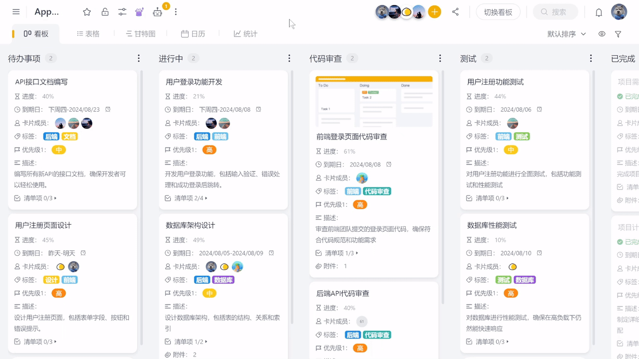 • 上午10:00,开会时一边讨论一边实时拖动卡片调整优先级