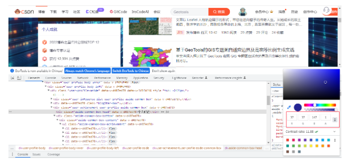 在RGB颜色模型中,每种基本颜色的强度通常用0到255之间的整数来表示。0表示该颜色完全不发光,255表示该颜色以最大强度发光。因此,一个完整的RGB颜色值由三个数值组成,分别对应红、绿、蓝三种颜色的强度。例如,RGB(255,0,0)表示纯红色,RGB(0,255,0)表示纯绿色,RGB(0,0,255)表示纯蓝色。而RGB(255,255,255)则表示白色,RGB(0,0,0)表示黑色。这种数值表示方法使得计算机能够方便地存储、处理和传输颜色信息,为数字图像的处理和显示提供了基础。在Html网页中,我们可以打开颜色拾取器,通过颜色拾取器可以看到颜色的RGB值,查看方法如下: