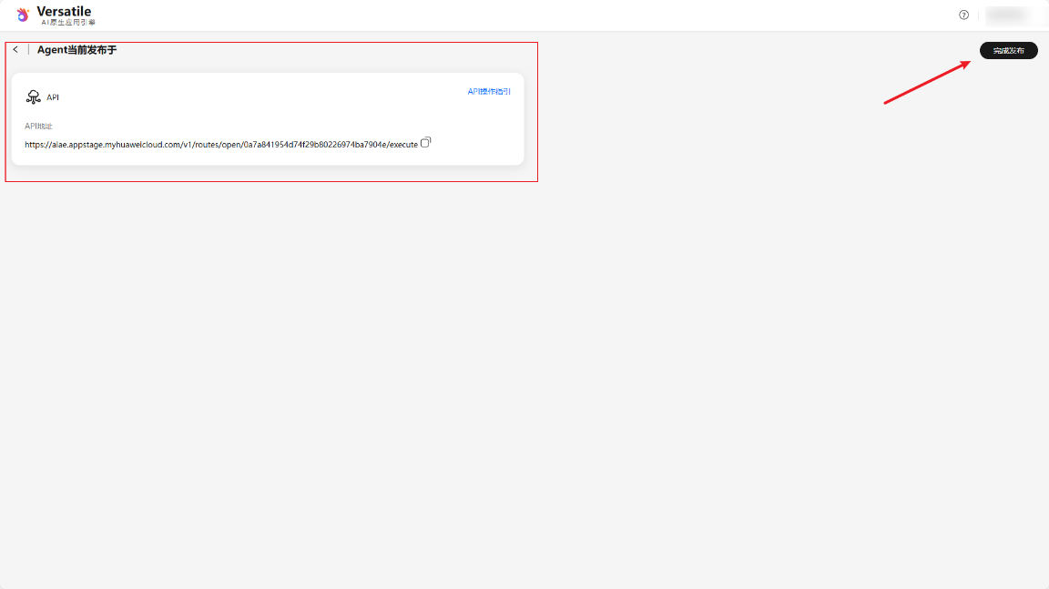 (5)待创建完成后,就可以“完成发布”,发布完成后会生成两种访问方式,Web URL可直接打开体验Agent。