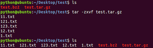 - .gz和.bz2的压缩文件使用tar命令来完成压缩和解压缩