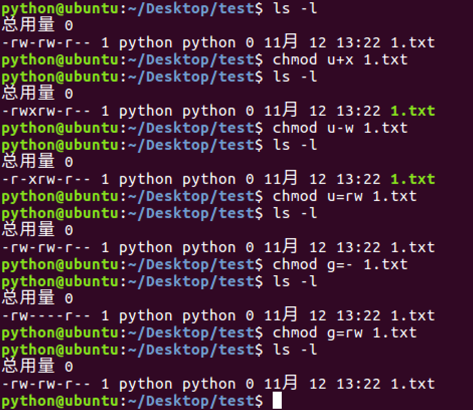 chmod命令同时设置多个角色的效果图:
