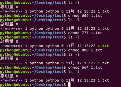 - 能够使用chmod命令完成文件权限的修改