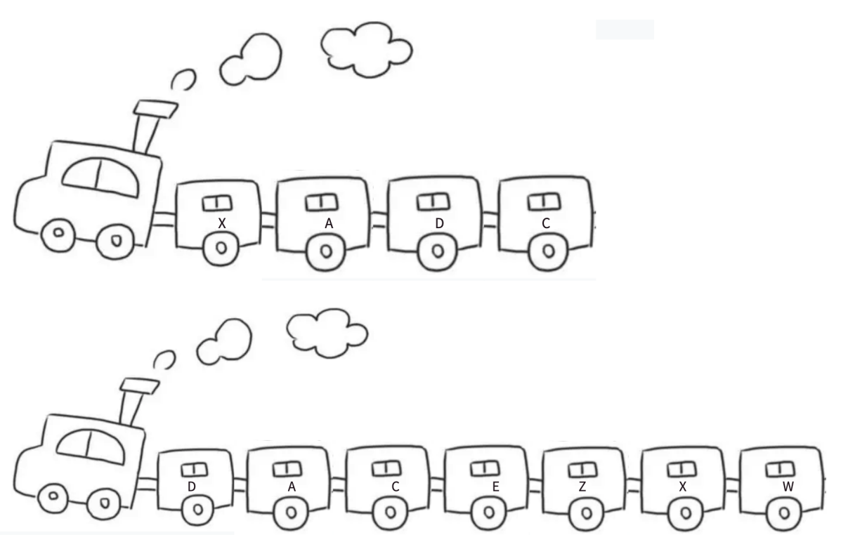 链表的结构跟火车厢相似,淡季时⻋次的⻋厢会相应减少,旺季时⻋次的⻋厢会额外增加⼏节。只需要将⽕⻋⾥的某节⻋厢去掉/加上,不会影响其他⻋厢,每节⻋厢都是独⽴存在的。⻋厢是独⽴存在的,且每节⻋厢都有⻋⻔。想象⼀下这样的场景,假设每节⻋厢的⻋⻔都是锁上的状态,需要不同的钥匙才能解锁,每次只能携带⼀把钥匙的情况下如何从⻋头⾛到⻋尾?