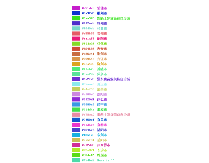 当然,以上的图例是采用一种垂直的布局方式,而且是预设高度和宽度,在实际情况下我们可能需要指定一行展示几个,同时为了比较好的展示图例,我将图例的颜色和色块的填充色设置成一样的。大家可以根据自己的喜好进行统一设置。