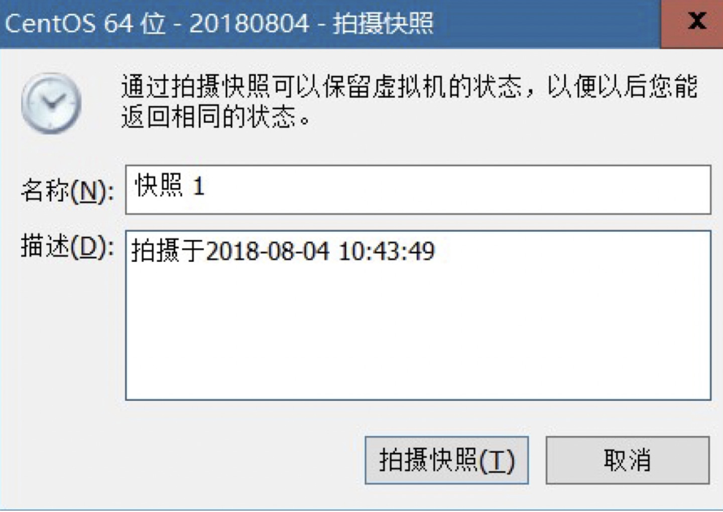 在对话框中填写基本的信息,之后点击拍摄快照即可。