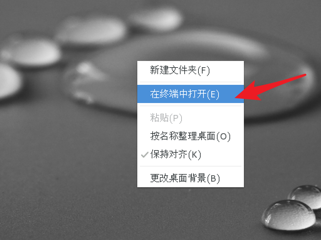 第二种方式:鼠标右击桌面任意位置 - 点击 【在终端中打开】