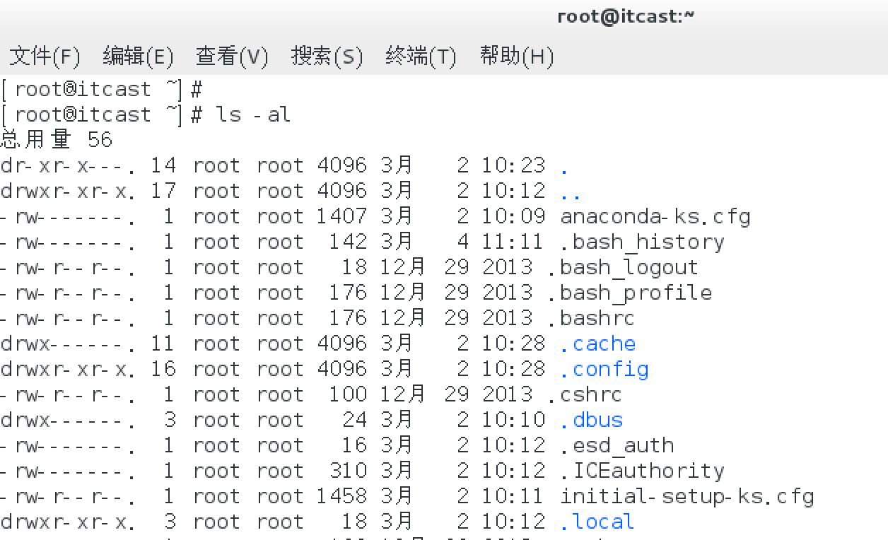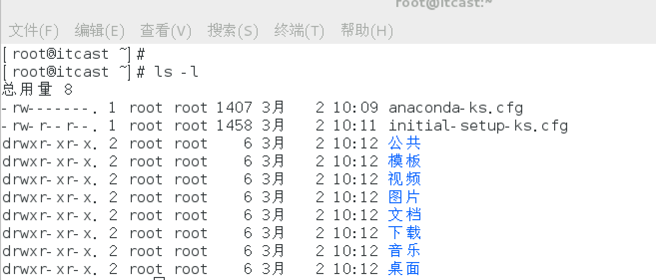 扩展命令:# ll,ll等价于“# ls -l”