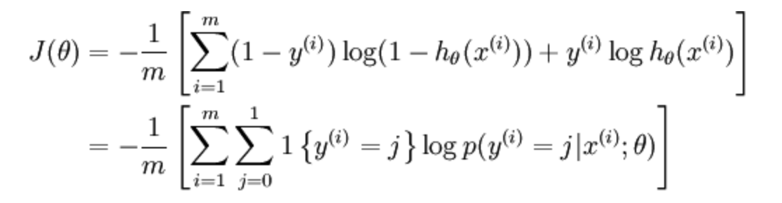 总损失函数可以记为J=1m∑i=1mL(y^,y)J = \frac{1}{m}\sum^m_{i=1}L(\hat y, y)J=m1∑i=1mL(y^,y)