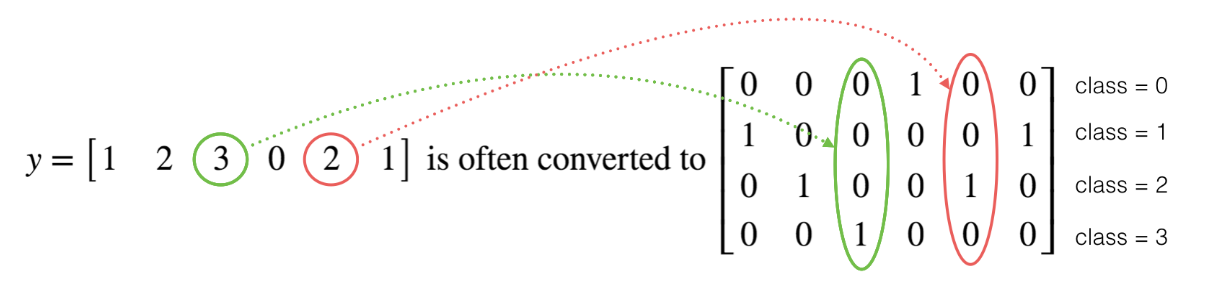 对于真实值会进行一个one-hot编码,每一个样本的所属类别都会在某个类别位置上标记。