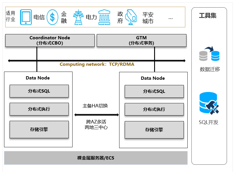 • GTM-Lite 技术:轻量级全局事务管理,避免单点瓶颈,支持每秒百万级事务处理。