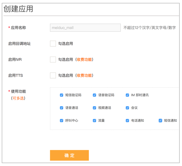 3.容联云创建应用