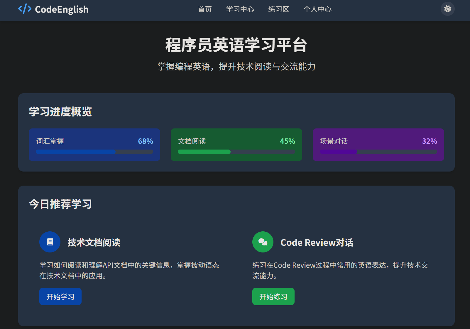 在全球化开发的今天,英语已成为程序员的"第二母语"——无论是阅读API文档、调试英文错误日志,还是参与GitHub开源协作、跨国团队沟通,流畅的技术英语能力都是效率的关键。然而,传统英语学习资源普遍存在"场景脱节"问题:普通英语APP侧重日常用语,专业词典又缺乏交互练习。2025年7月,用户提出需求:“帮我做一个学习程序员英语的可交互网站”,这一需求精准切中了开发者痛点。本文将详细记录从需求分析到网站上线的全流程,展示如何将一个简单构想转化为功能完整的学习平台。