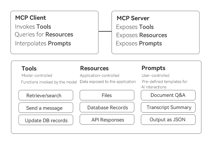 可见,Client – Server的交互是MCP的核心,如下图: