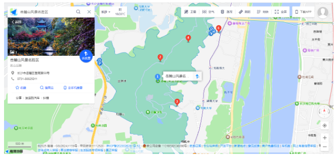 这里以长沙岳麓山风景区为例,主要介绍如何得出岳麓山及风景区内的POI数据的分布情况。从而为下一步对该风景区的商业及人文指数进行评价。由此我们需要对岳麓山风景区的空间范围数据,以及有了AOI范围后对其范围内的POI数据进行检索的流程进行简单说明。