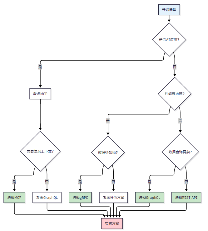 作为博主摘星,通过对MCP与传统集成方案的深入对比分析,我深刻认识到技术选型不仅仅是一个技术问题,更是一个涉及业务需求、团队能力、成本效益和风险控制的综合性决策。在这次全面的技术对比中,我们从多个维度深入分析了REST API、GraphQL、gRPC和MCP四种主流集成方案的技术特点、性能表现、安全机制和可维护性,发现每种方案都有其独特的优势和适用场景。REST API以其简单易用和成熟的生态系统在传统Web应用中仍然占据重要地位;GraphQL凭借其灵活的查询能力在复杂数据场景中表现出色;gRPC以其高性能特性在微服务架构中发挥着重要作用;而MCP作为专为AI应用设计的新兴协议,在AI场景下展现出了独特的优势。通过量化的评估体系和实际的成本效益分析,我们发现MCP在AI应用场景下不仅技术上更加适配,在总拥有成本方面也具有显著优势,能够在3年期内节省20-50%的总成本。然而,作为一个相对较新的技术,MCP也面临着协议成熟度和生态系统建设的挑战,这需要我们在技术选型时采用更加谨慎和渐进的策略。基于这次深入的对比分析,我建议技术决策者在选择集成方案时,首先要明确项目的核心需求和约束条件,然后结合团队的技术能力和项目的长期发展规划,采用我们提出的决策框架进行系统性的评估。对于AI应用项目,MCP无疑是一个值得重点考虑的选择,但需要配合适当的风险缓解策略;对于传统的Web应用,REST API仍然是一个稳妥的选择;而对于需要复杂数据查询的应用,GraphQL则可能是更好的选择。最终,技术选型的成功不仅取决于技术方案本身的优劣,更取决于我们是否能够结合具体的业务场景和团队实际情况,做出最适合的技术决策。