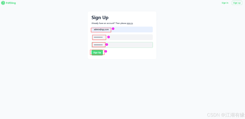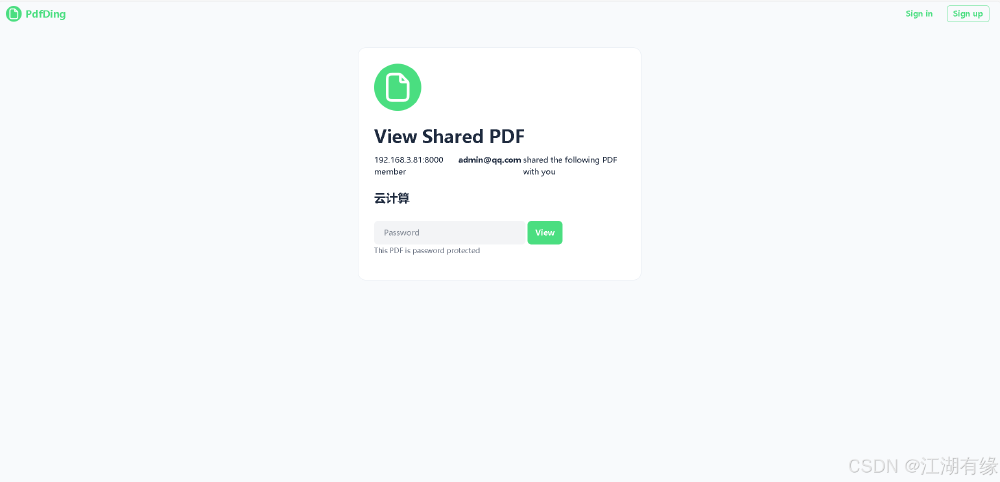 访问地址:http://服务器IP地址:8000,将IP替换为自己服务器的IP地址,进入到PdfDing登录页。如果无法访问,则检查服务器防火墙是否设置,云服务器的安全组端口是否放行等。