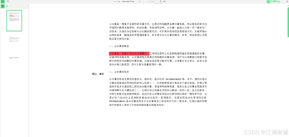 双击上传的PDF文件名后,可在线浏览其内容,效果如下所示: