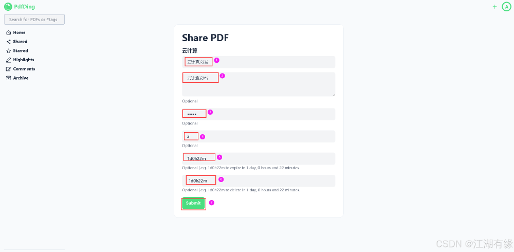 8. 分享与访问控制:通过链接或二维码分享 PDF,并可设置访问权限。