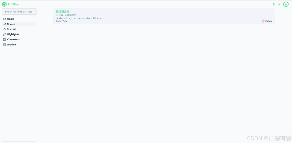 点击PdfDing首页的“adding”选项,进入文档上传页面。