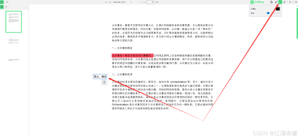 文本注释功能:点击文本图标,可以在文档界面任意处进行编辑文字注释。