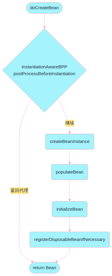A:某些 InstantiationAwareBeanPostProcessor(如 AOP)可在真正 new 对象前直接返回代理,跳过后续流程。