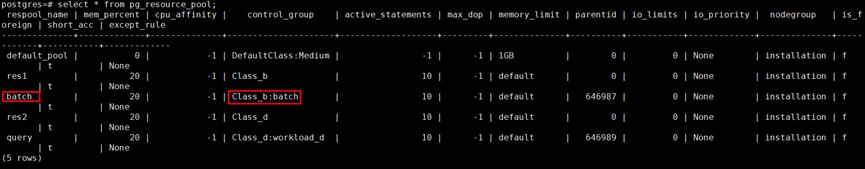 查看资源池在操作系统中cgroup名字,当前环境是在Class_b的batch group下