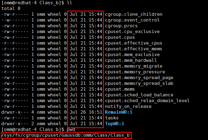 Cgroup配置是在/sys/fs/cgroup目录下,如果应受管控的语句未被管控,可以查看cgroup配置的时间是否存在刷新,本例父控制组是Class_b,子控制组是batch所以路径如下。