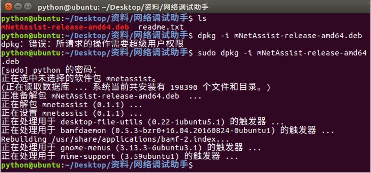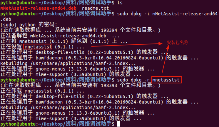 - sudo apt–get install 安装包 , 表示在线安装deb安装包