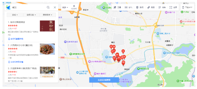 多边形区域搜索:开发者可设置首尾连接的几何点组成多边形区域,搜索坐标对应多边形内的地点信息;