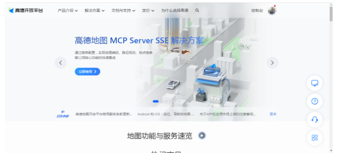 在之前的系列博客中,我们介绍了天地图的相关WebAPI,基于天地图的WebAPI我们可以做一些应用。由于一些客观存在的原因,比如天地图的一些POI数据,与百度和高德等平台还是有一定差距,下次可以针对某一个具体的检索场景,对同一个区域进行检索,来对比一下三个平台的数据情况,本文暂且不表。因此为了能有更精准的数据参与分析,这里我们来说说如何从高德平台获取数据。进入到开放平台的首页后可以看到以下界面,这里有很多介绍的文字,大家可以到官网看一下,不再赘述。