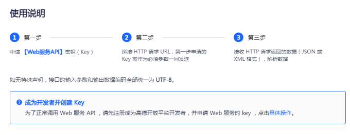 用户在高德地图官网 申请Web服务及APIkey |