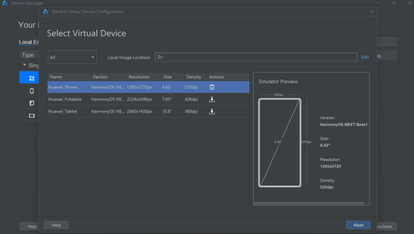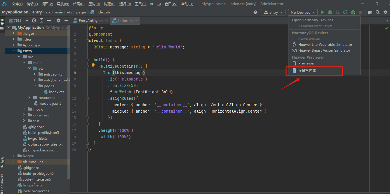 【摘要】 有些功能在预览器看不到效果,只能在模拟器中预览配置模拟器1.1 单击【设备管理器】1.2 初次使用提示登录华为账号登录后会提示提交申请,申请成功后再重复以上步骤1.3 登录后选择模拟器类型下载下载中1.4 启动模拟器单击蓝色三角形,启动模拟器1.5 启动后可能会显示错误未开启Hyper-V如果报错,开启Hyper-V参考官网文档https://developer.huawei.cn/con...