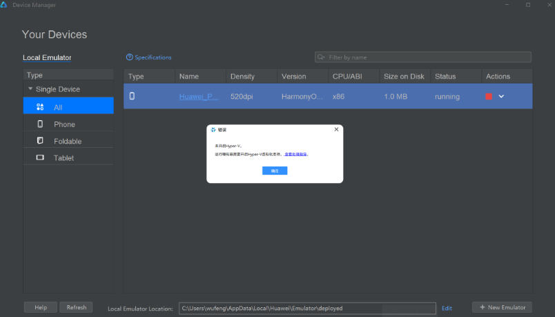 https://developer.huawei.cn/consumer/cn/doc/harmonyos-guides-V5/ide-emulator-faqs-V5#section172728114485