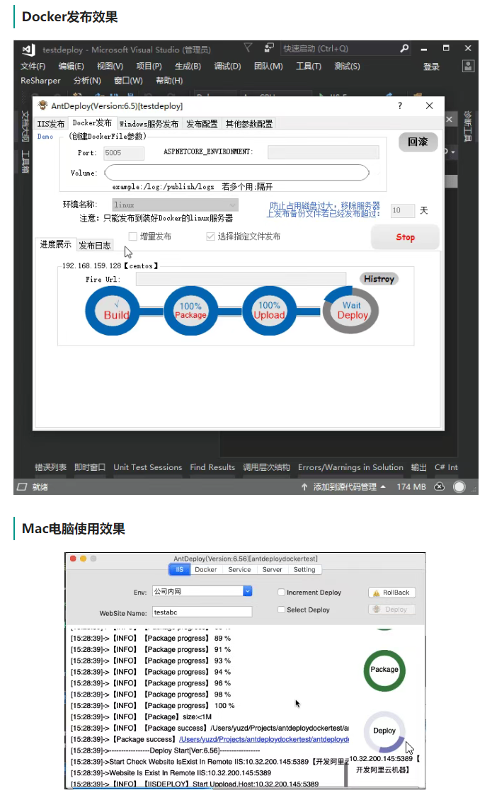 AntDeploy 是一款由 .NET 开源、实用的 Visual Studio 发布部署插件,支持部署 Docker、IIS、Windows 和 Linux 服务,同时支持 .NET Framework 和 .NET Core,支持回滚和增量部署,在支持 Visual Studio 2019 和 2022 中使用。